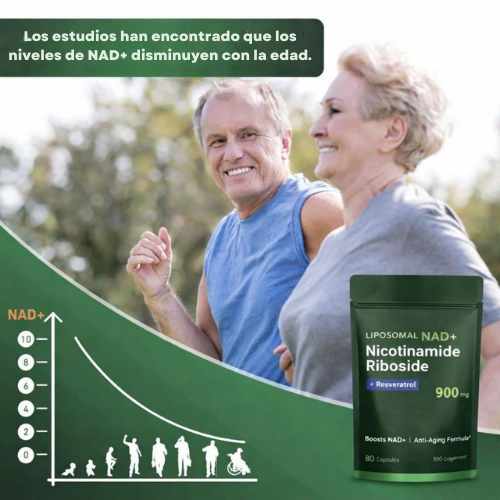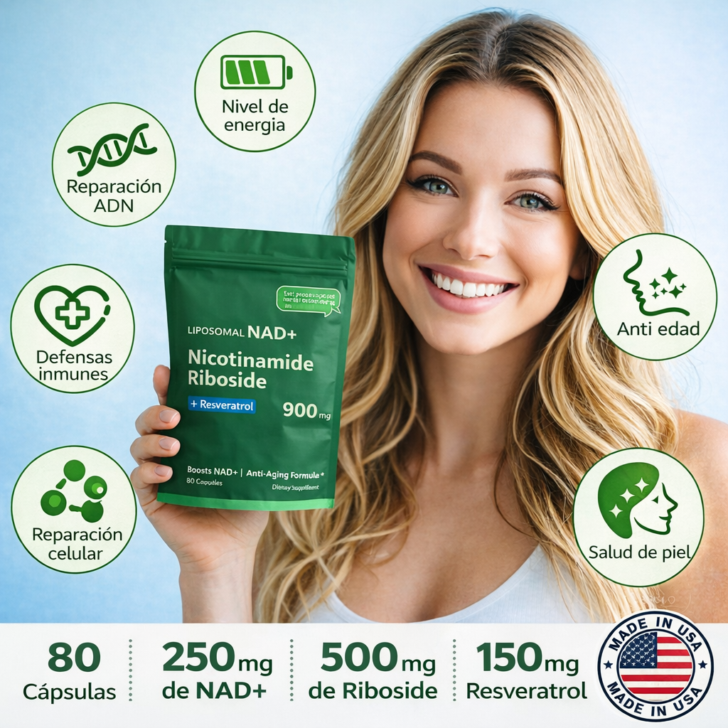 Cada cápsula activa tu energía desde adentro. Con una combinación poderosa de Nicotinamide Riboside, NAD+ y Resveratrol, tu cuerpo recibe el impulso que necesita para sentirse más joven, fuerte y vital.