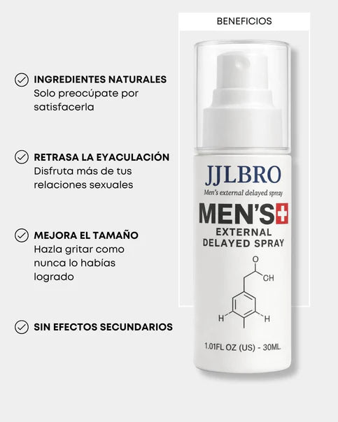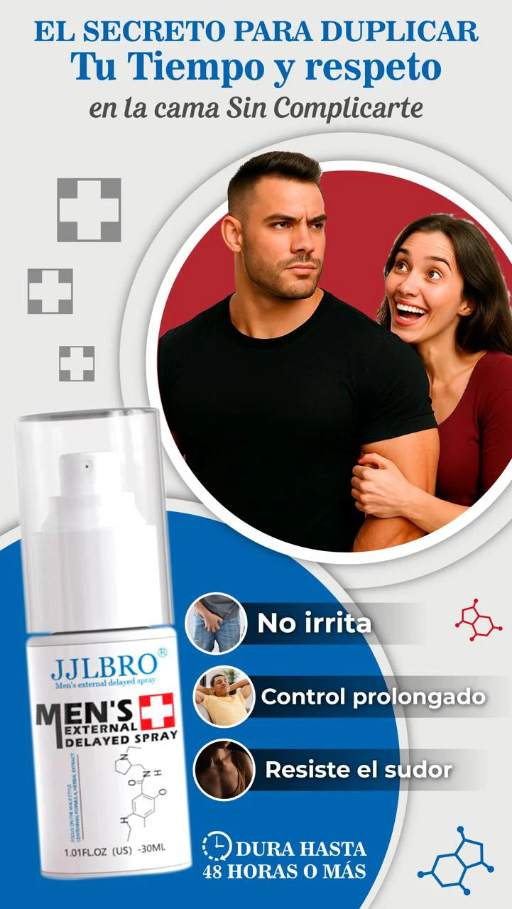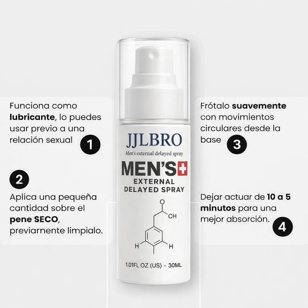 Recibes nuestro JJLBRO Spray Retardante, de uso externo, diseñado para ayudar a controlar la sensibilidad, prolongar la duración y mejorar la confianza en cada encuentro íntimo.